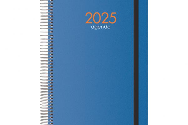 Agenda anual. Cubierta realizada en tapa de polipropileno opaco y goma elástica Interior con sábado y domingo en la misma página, con 336 páginas. Datos personales, Calendario trienal, Planning del año, Indicativos internacionales, páginas para anotaciones, onomástica, Semana, Calendarios del mes actual y siguiente. Colores disponibles: Azul y negro. Tamaños disponibles : 12x21cm / 21x29cm